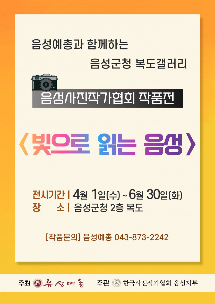 - 내용: 음성사진작가협회 작품전 <빛으로 읽는 음성>