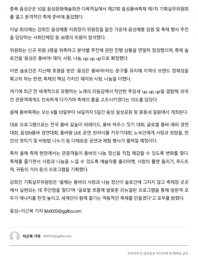 - 다음글음성군, 제27회 음성품바축제 기획실무위원회 진행(26.03.10 브레이크뉴스)(2) 26.03.12