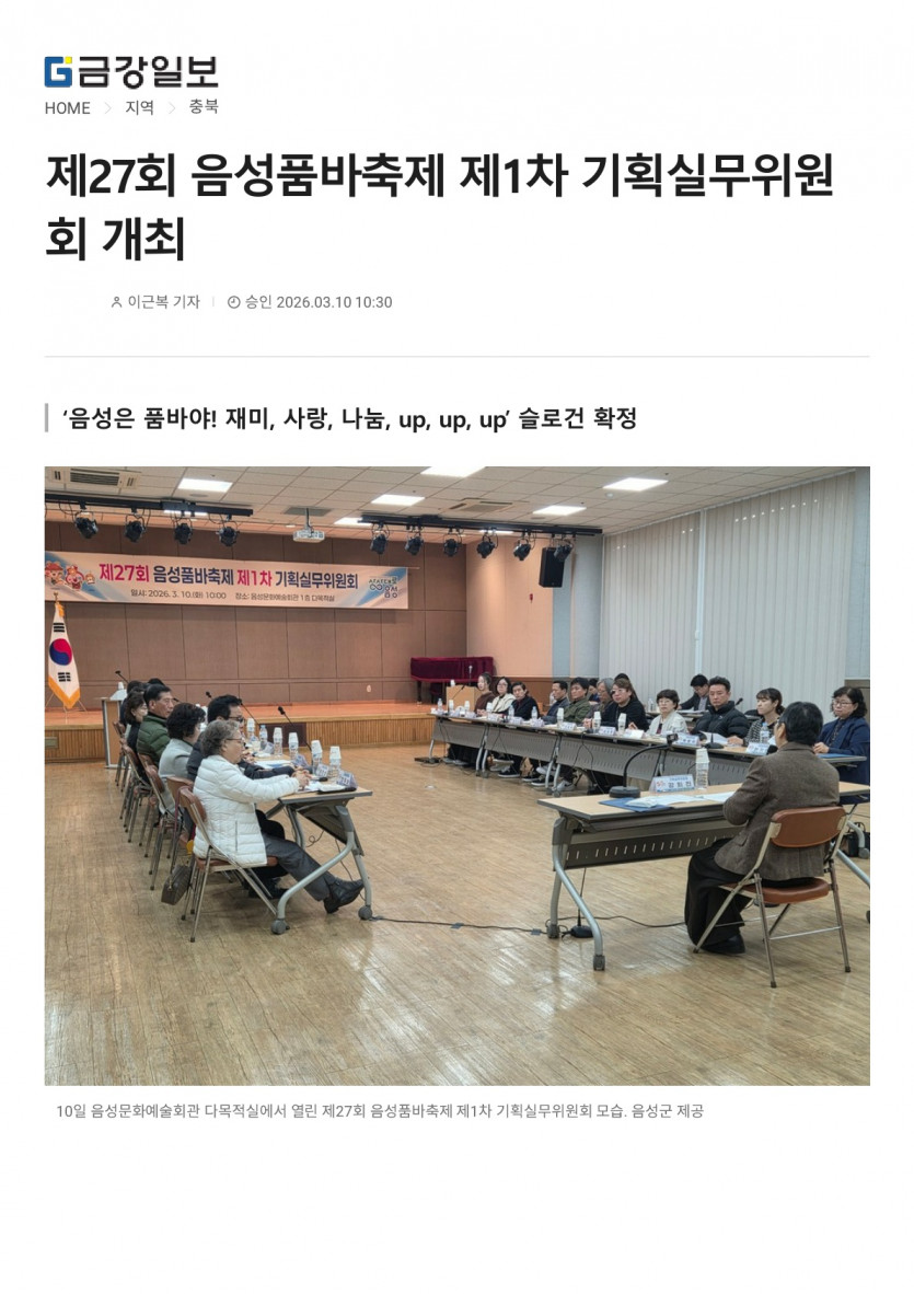 제27회 음성품바축제 제1차 기획실무위원회 개최(26.03.10 금강일보)