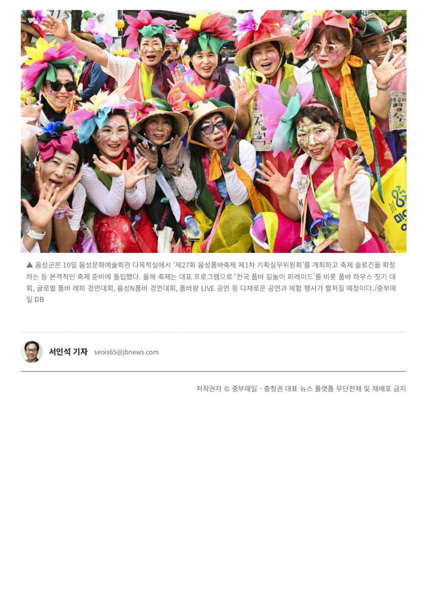 - 다음글음성군 ‘제27회 품바축제 제1차 기획실무위원회’ 개최(26.03.10 중부매일)(1) 26.03.12