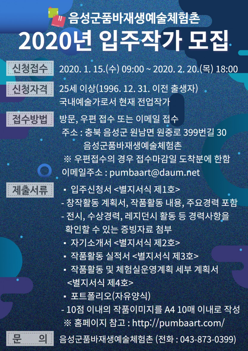 2020년 음성군품바재생예술체험촌 입주작가 모집