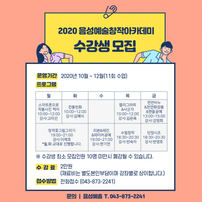 2020 음성예술창작아카데미 아카데미 수강생 모집(10월 19일부터 시작)
