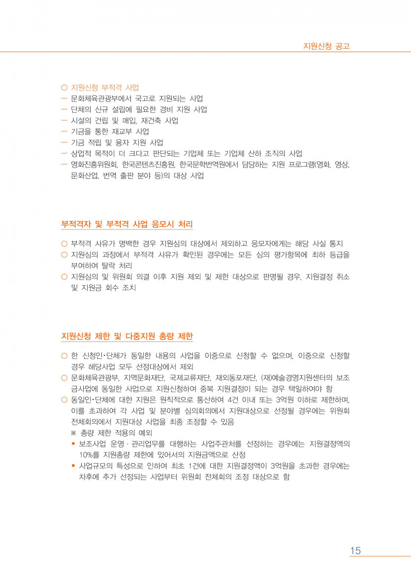 1. 분 야 : 5개 분야(문학, 시각예술, 연극, 무용, 음악, 전통예술)