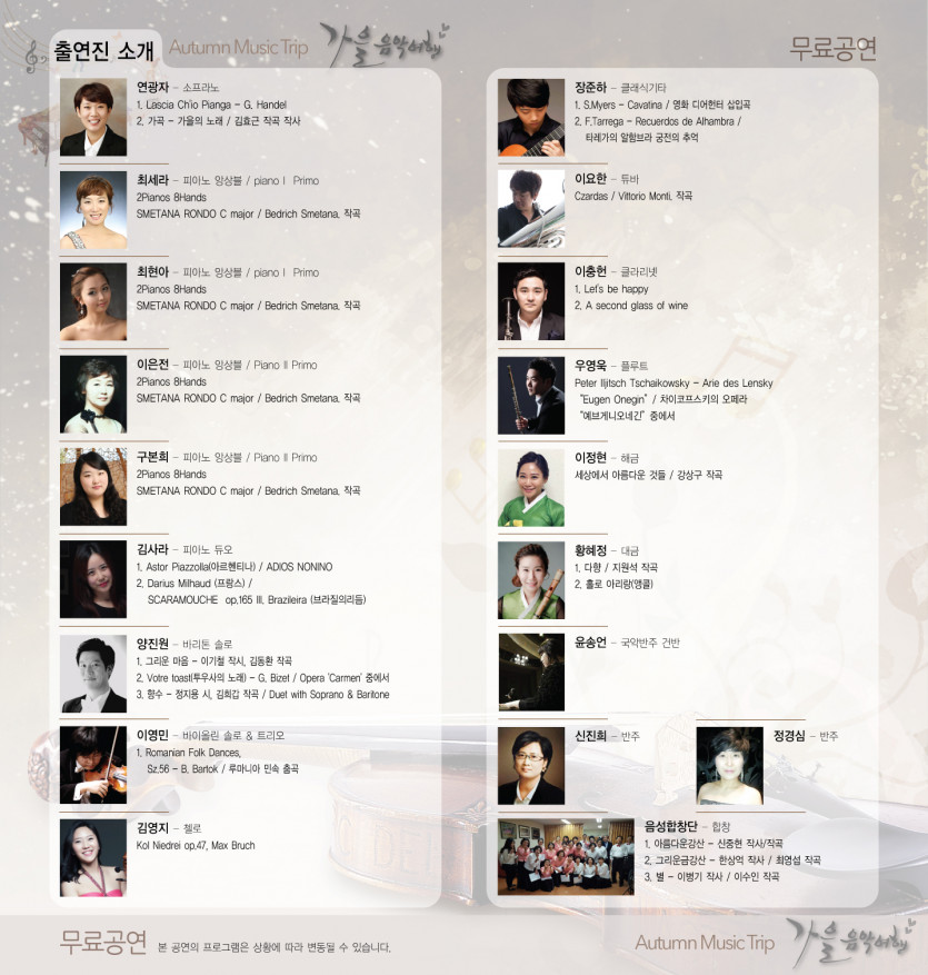 * 무료공연으로 티켓 없이 선착순 입장(공연 30분 전부터 입장 가능)