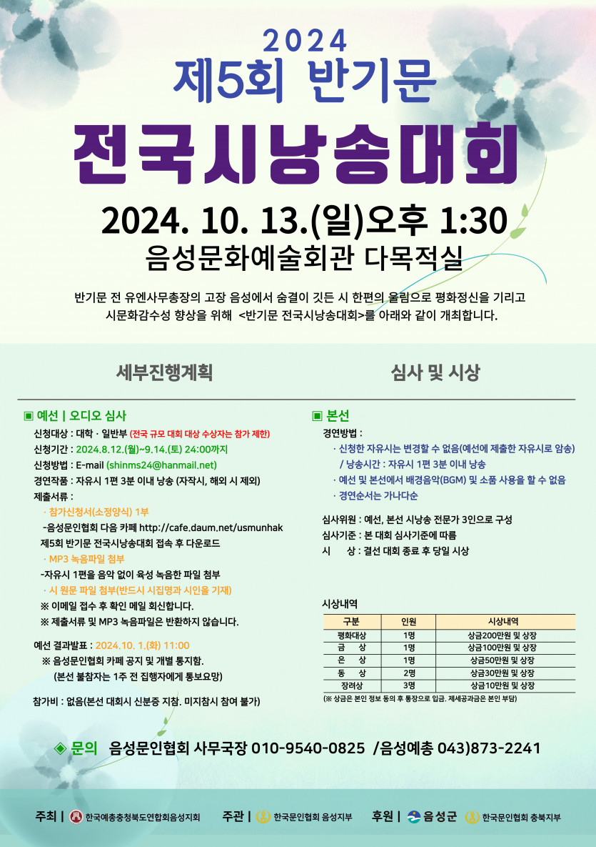 2024 음성예술제 제5회 반기문 전국 시낭송 대회(음성문인협회)