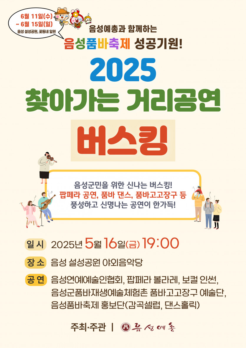 - 내용: 음성연예예술인협회, 팝페라 볼라레, 보컬 인썬, 음성군품바재생예술체험촌 품바고고장구 예술단, 음성품바축제 홍보단(감곡셀럽, 댄스홀릭)