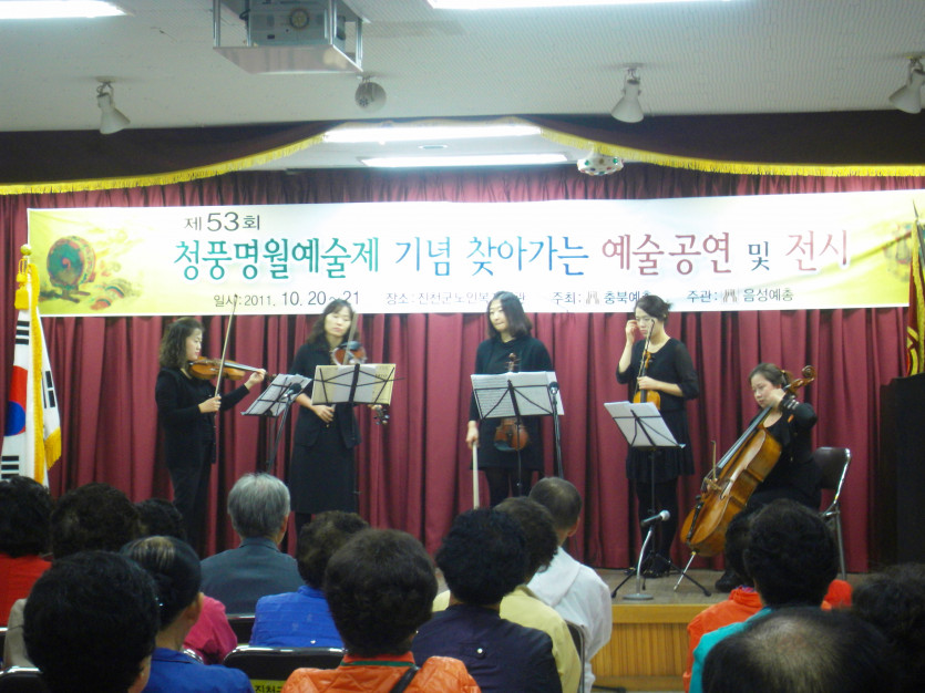 지난 10월20일~21일 10월27일~28일까지 찾아가는예술공연 및 전시를 진천군 노인복지회관과 괴산군노인복지회관을 방문하여 음성예총 회원여러분들의 작품전시 및 공연을 하였다.