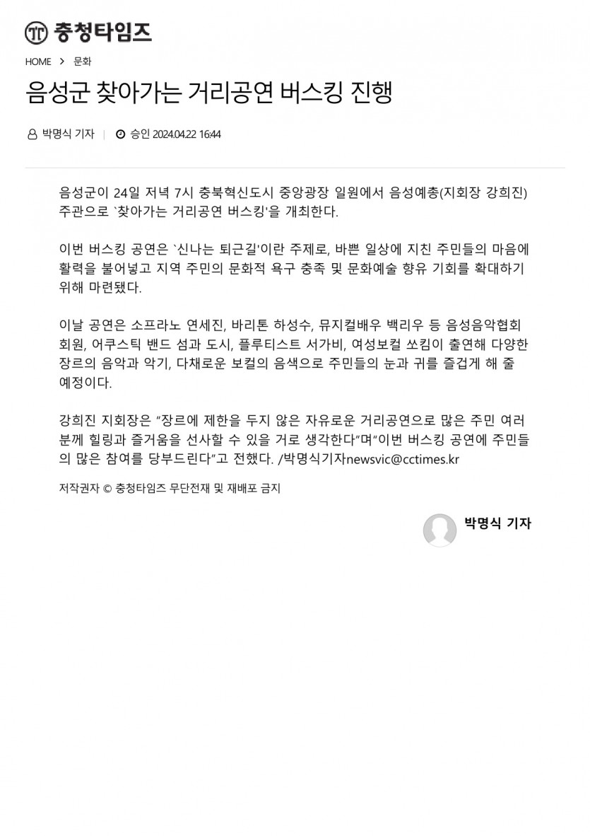 - 이전글충북 음성군 찾아가는 버스킹 공연 25.09.18