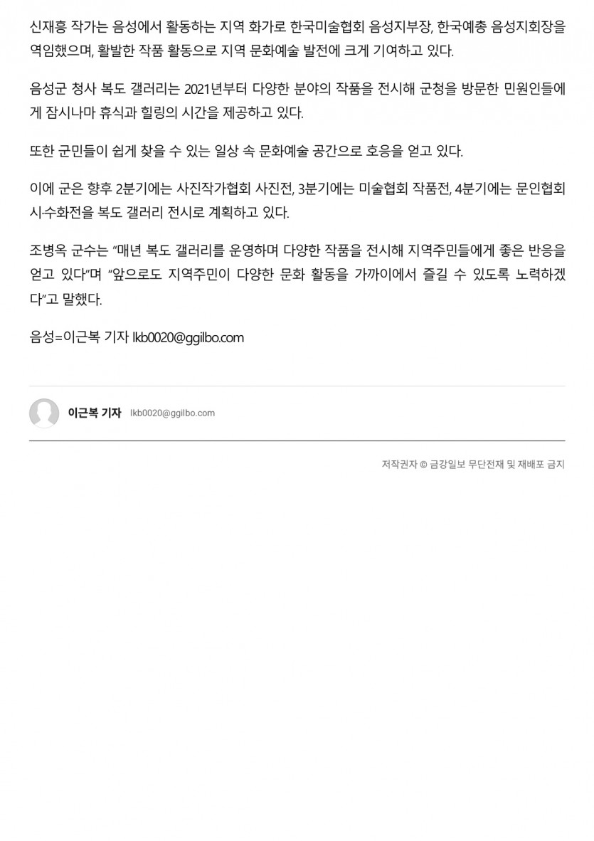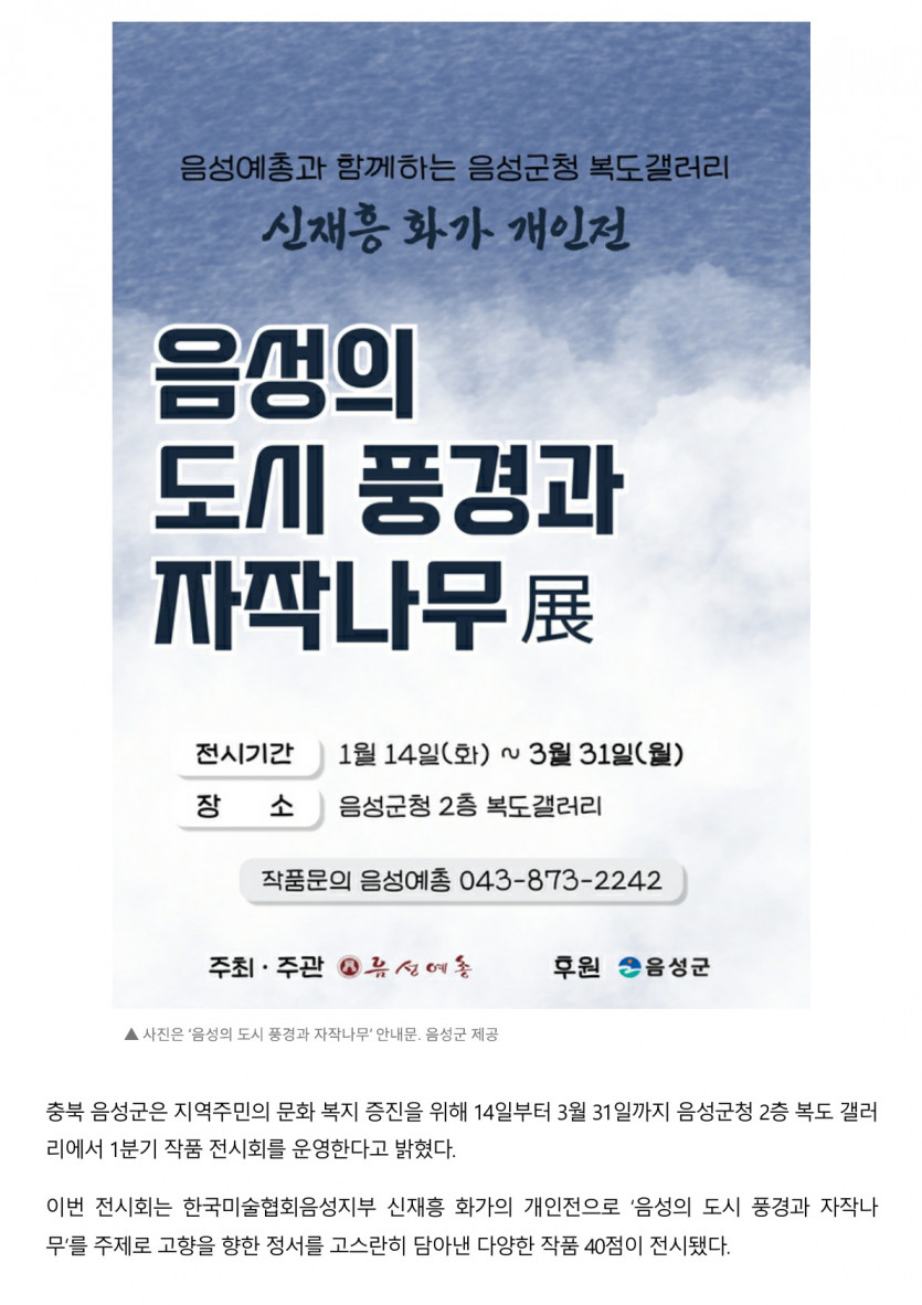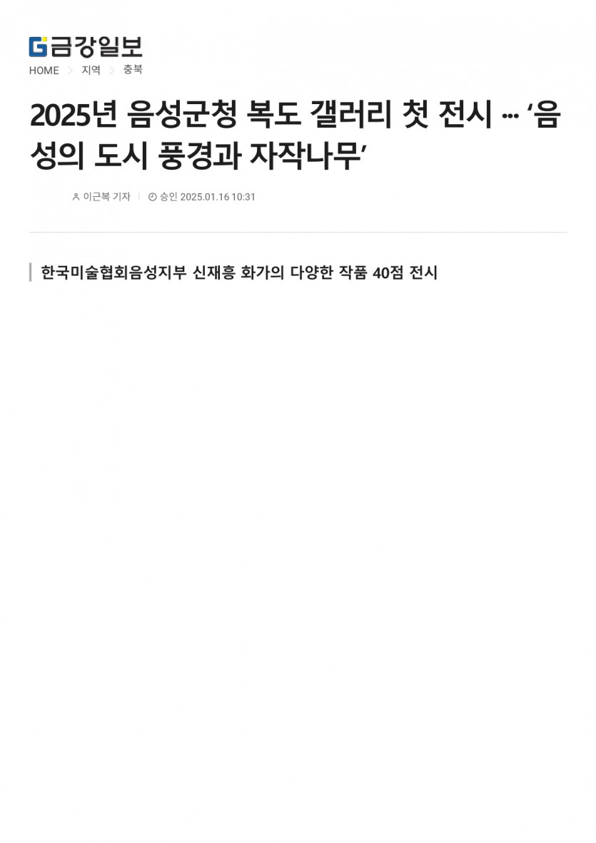2025년 음성군청 복도 갤러리 첫 전시··· 음성의 도시 풍경과 자작나무(2025.01.16. 금강일보)