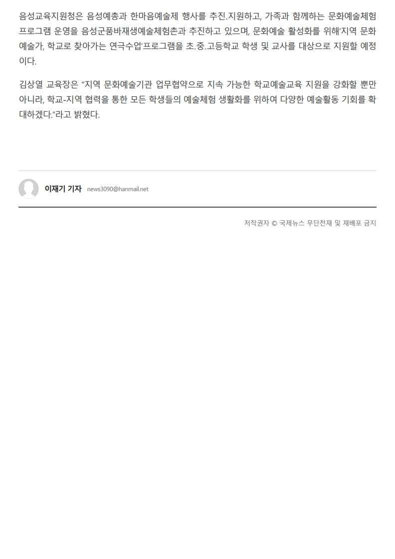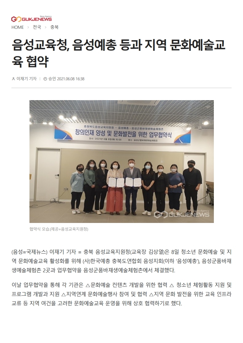 음성교육청, 음성예총 등과 지역 문화예술교육 협약