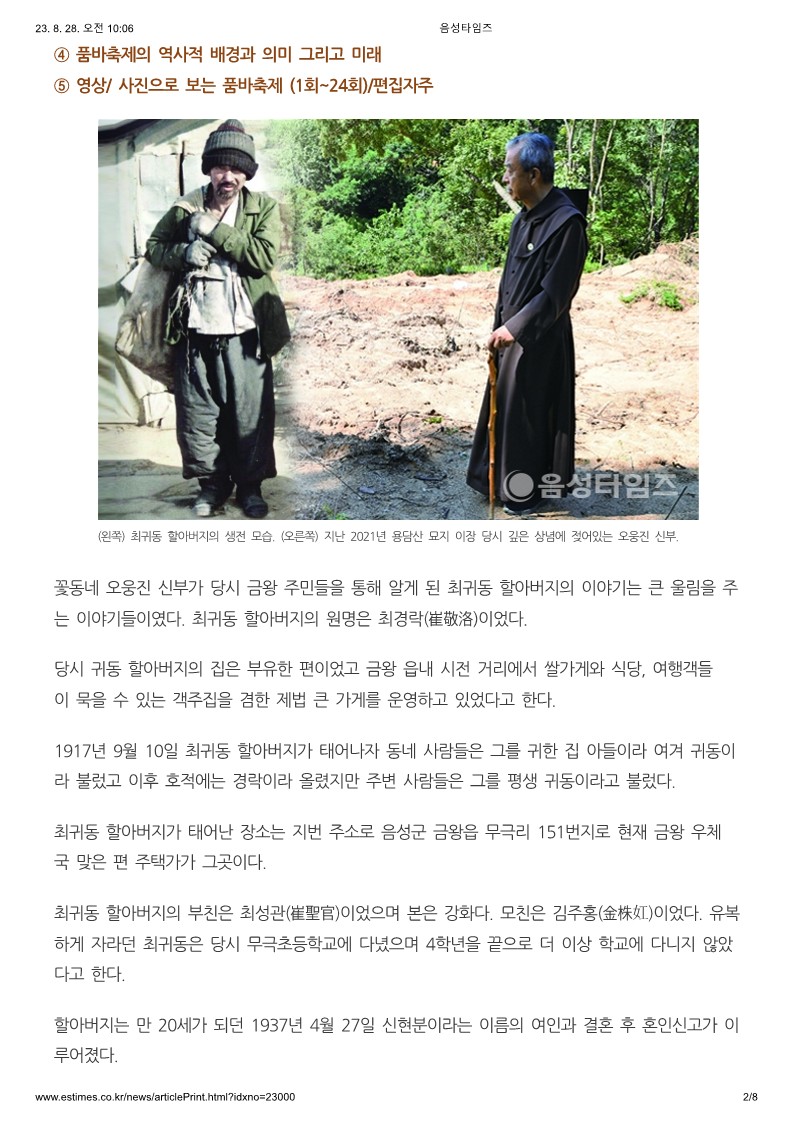 <기획보도3> 품바축제의; 태통... 최귀동 할아버지는 누구인가?