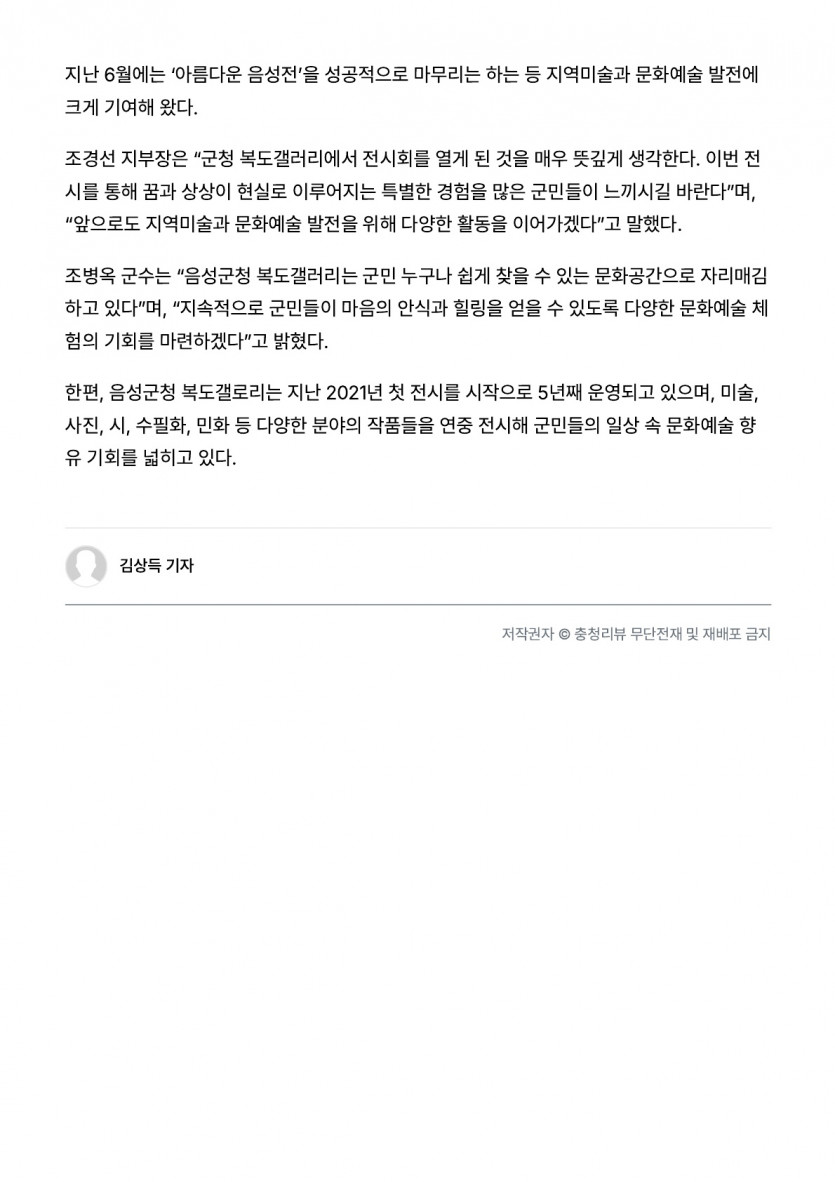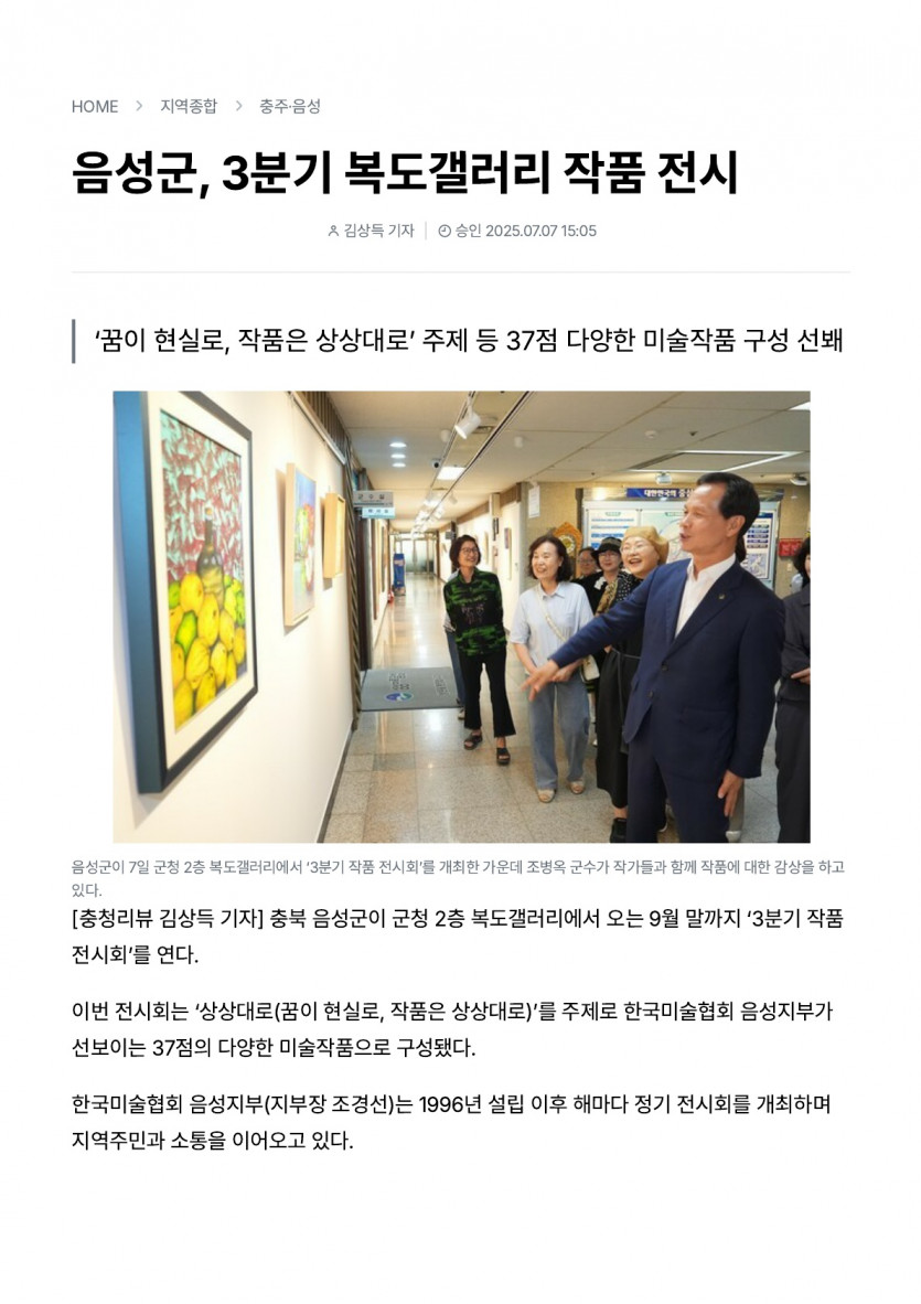 음성군, 3분기 복도갤러리 작품 전시(25.07.07 충청리뷰)