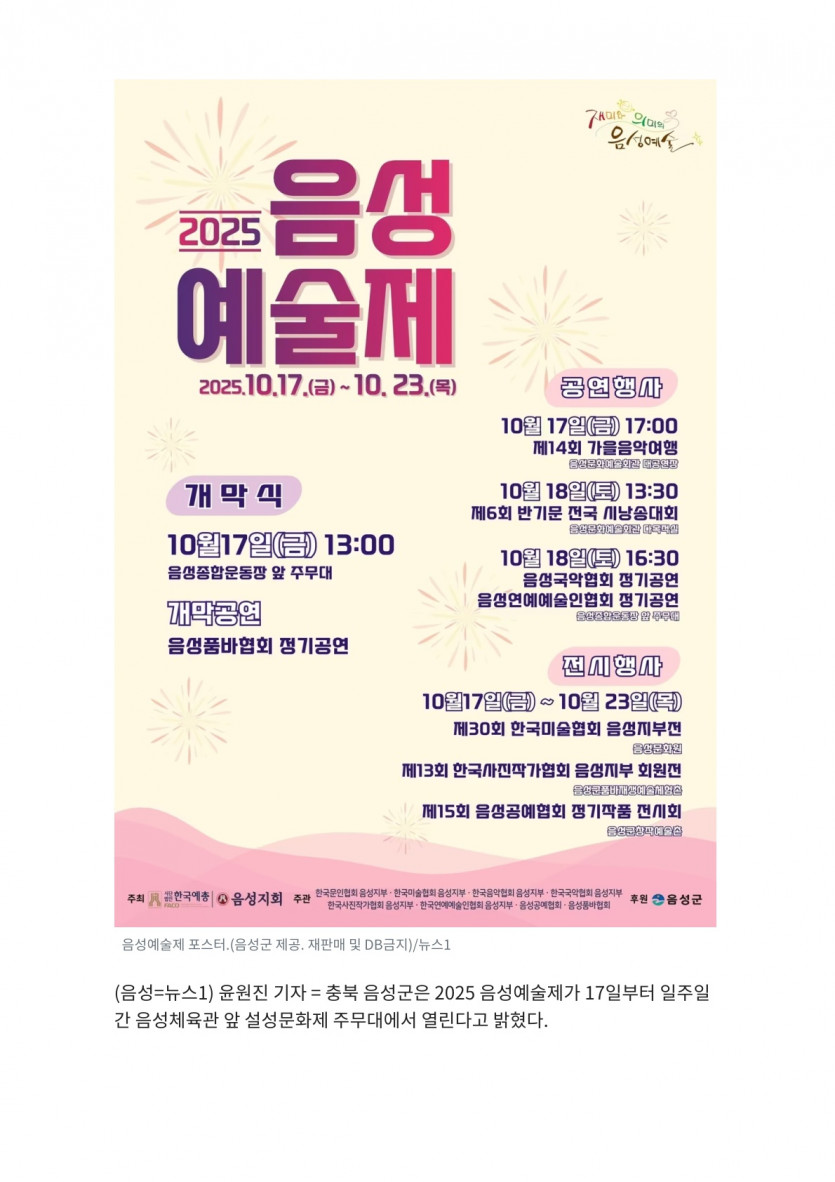 음성예술제 17일부터 일주일간 음성 일원서 개최(25.10.17 뉴스1)