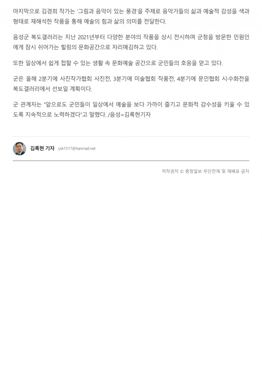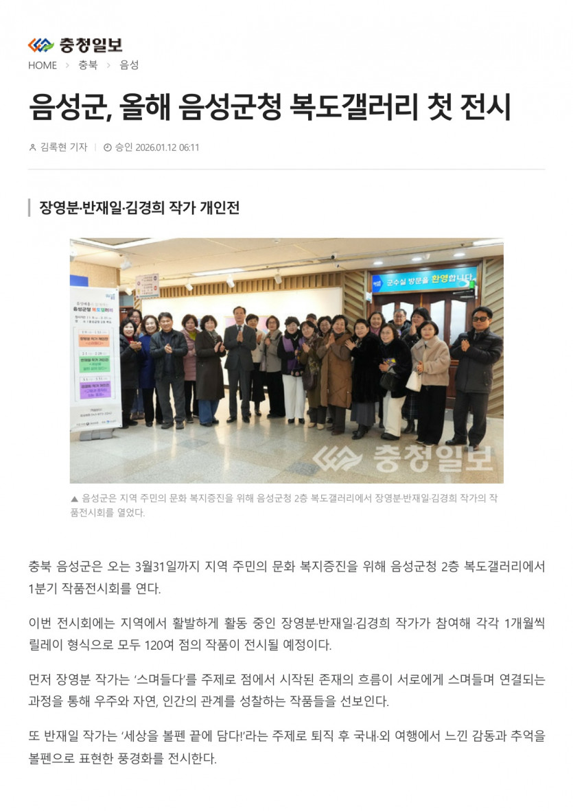 음성군, 올해 음성군청 복도갤러리 첫 전시(26.01.12 충청일보)