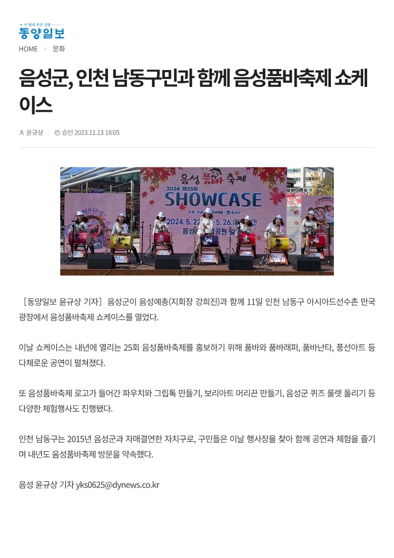 음성군, 인천 남동구민과 함께 음성품바축제 쇼케이스