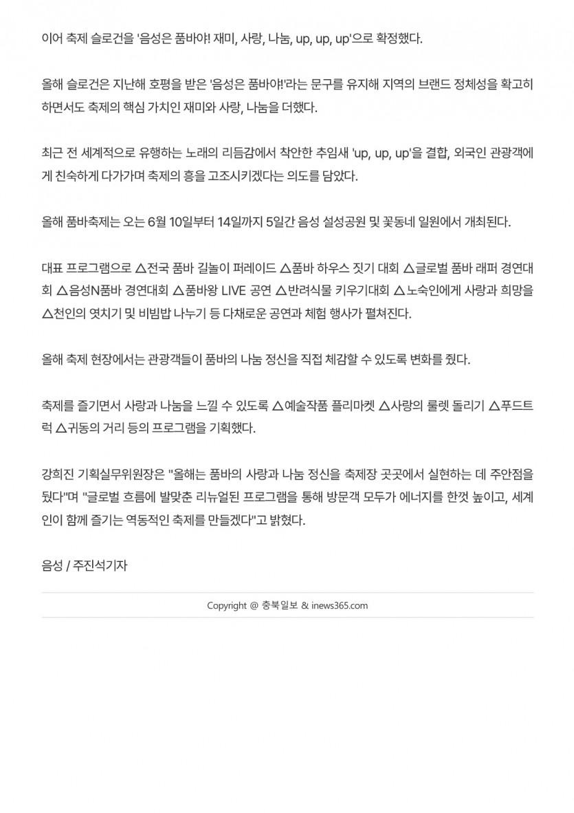 - 다음글제27회 음성품바축제 제1차 기획실무위원회 개최(26.03.10 금강일보) 26.03.12