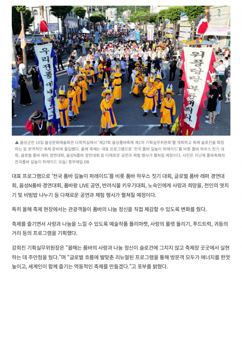 - 다음글음성군 ‘제27회 품바축제 제1차 기획실무위원회’ 개최(26.03.10 중부매일)(1) 26.03.12