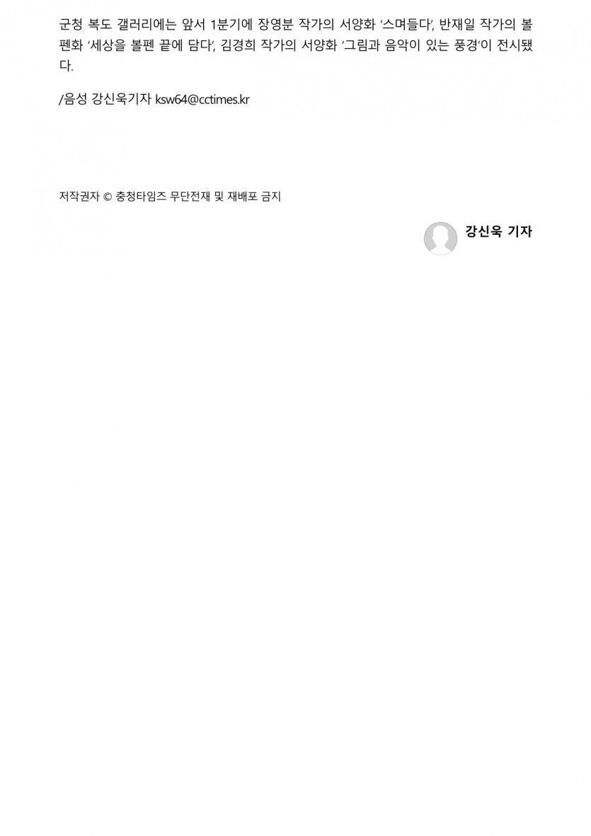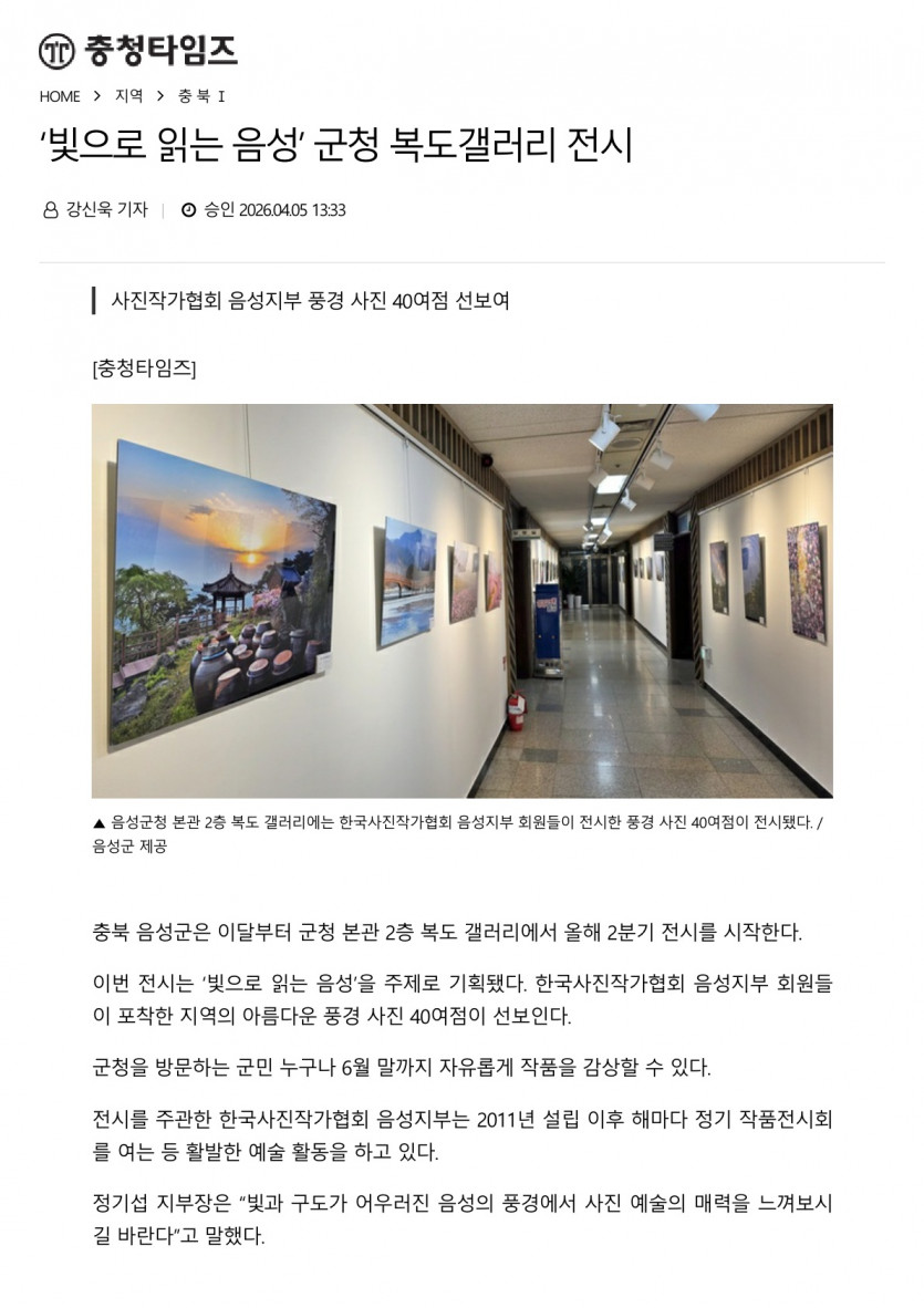 ‘빛으로 읽는 음성’ 군청 복도갤러리 전시(2026.04.05 충청타임즈)