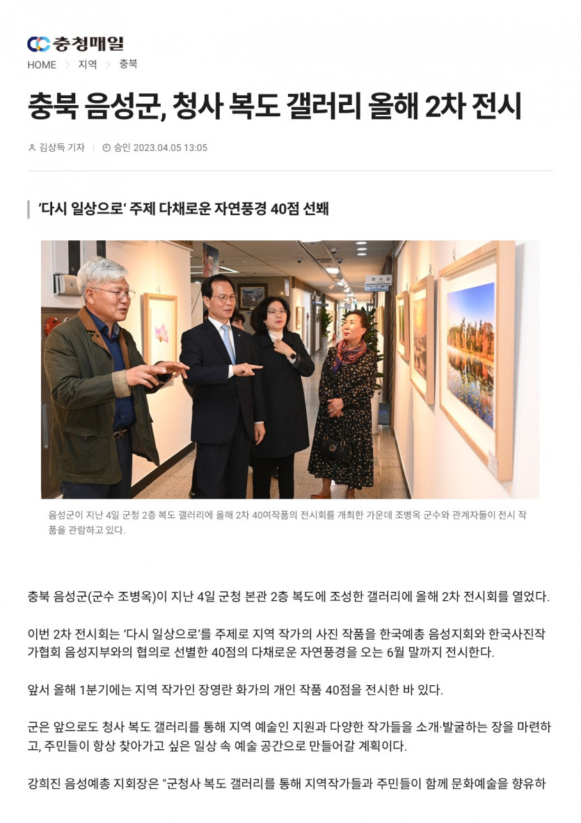 충북 음성군, 청사 복도 갤러리 올해 2차 전시 [ 2023.04.05 ]