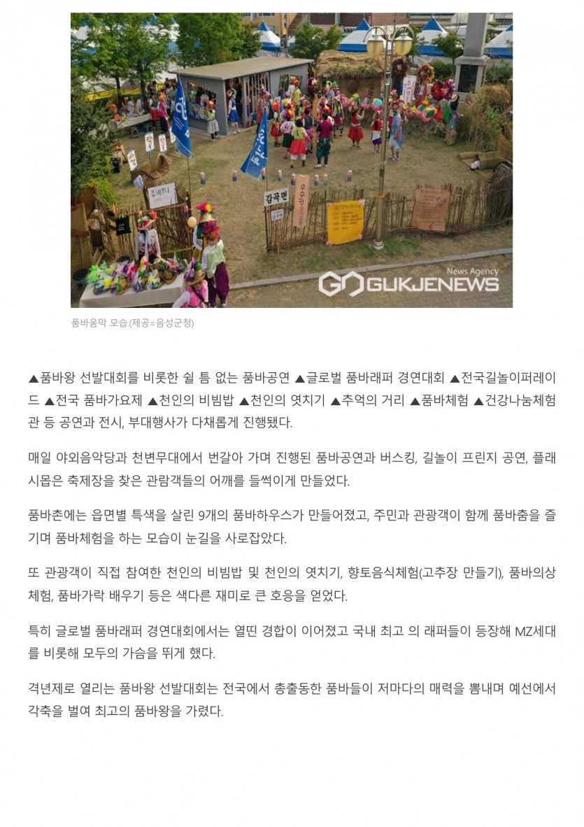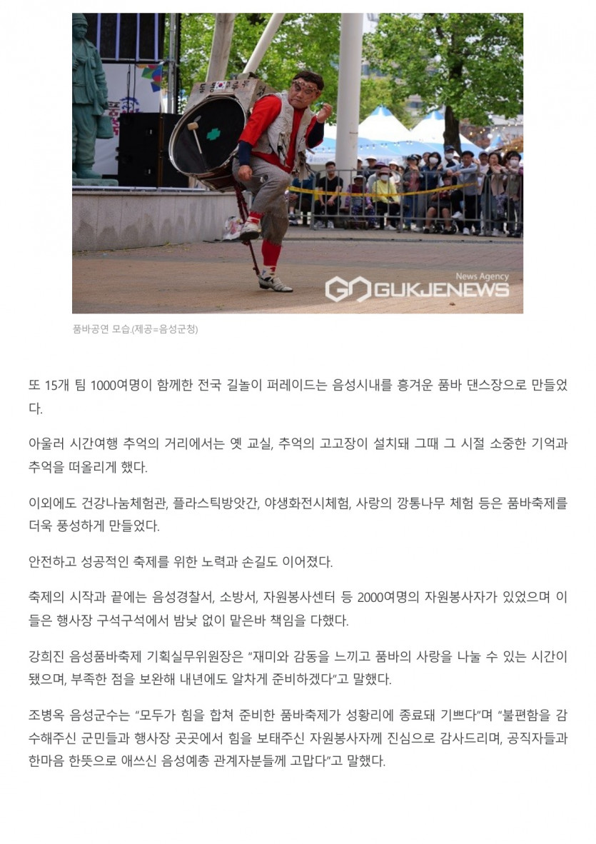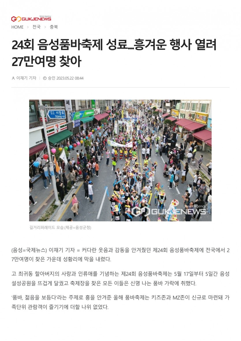 24회 음성품바축제 성료...흥겨운 행사 열려 27만여명 찾아 [ 2023.05.22 ]