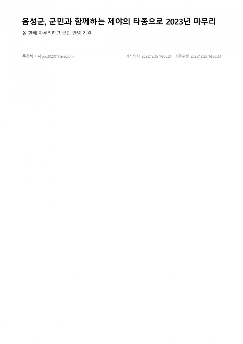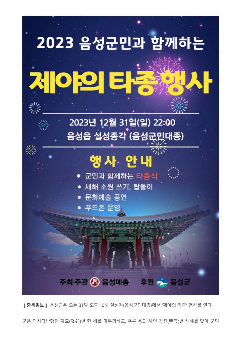 음성군, 군민과 함께하는 제야의 타종으로 2023년 마무리 [ 2023.12.25 ]