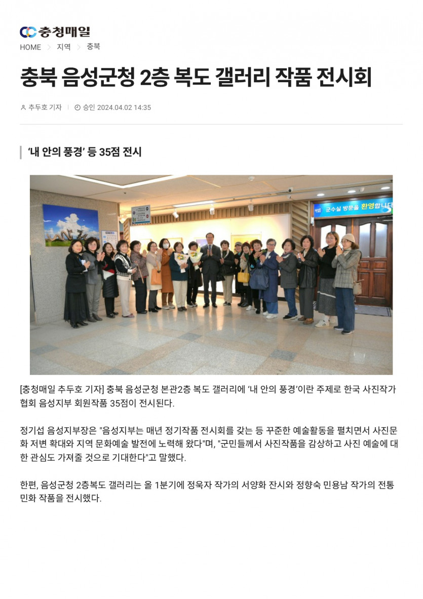 - 다음글음성군청 복도서 작품 전시회 25.09.18