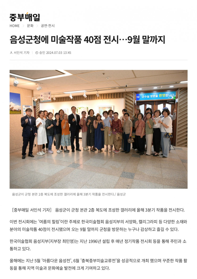 음성군청에 미술작품 40점 전시... 9월 말까지