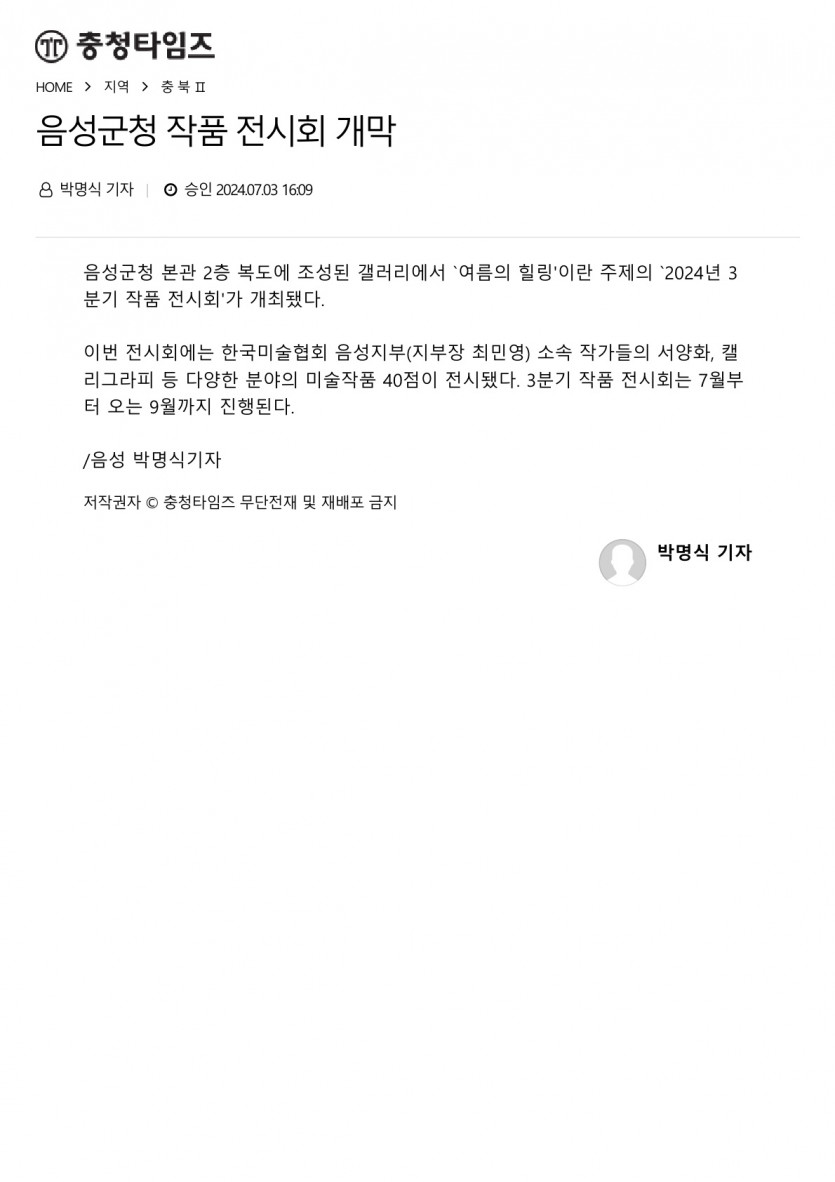 - 다음글충북 음성군청 복도갤러리 작품 전시회 25.09.18