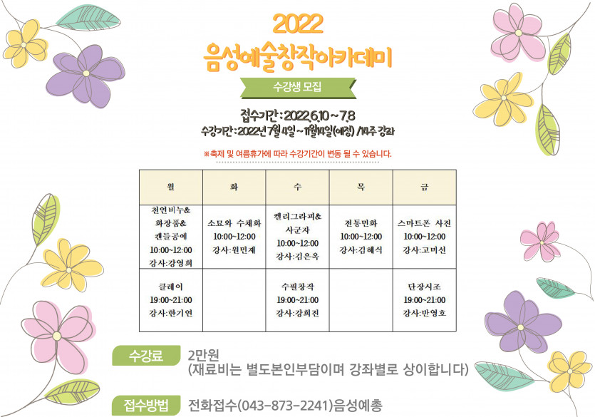 2022년 음성예술창작데미 문화예술강좌 수강생 모집