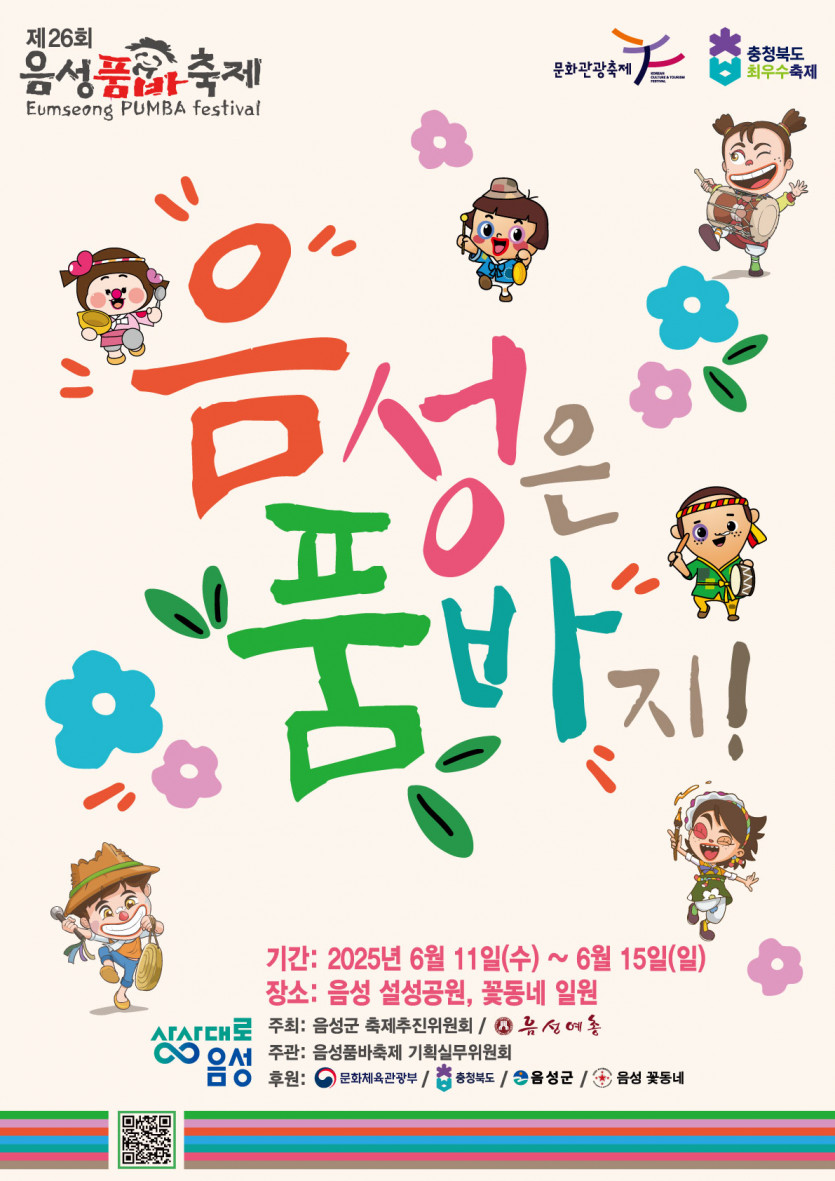 나눔과 사랑이 넘치는 제26회 음성품바축제가 2025년 6월 11일(수)부터 6월 15일(일)까지 5일간 음성 설성공원 및 꽃동네 일원에서 개최됩니다.